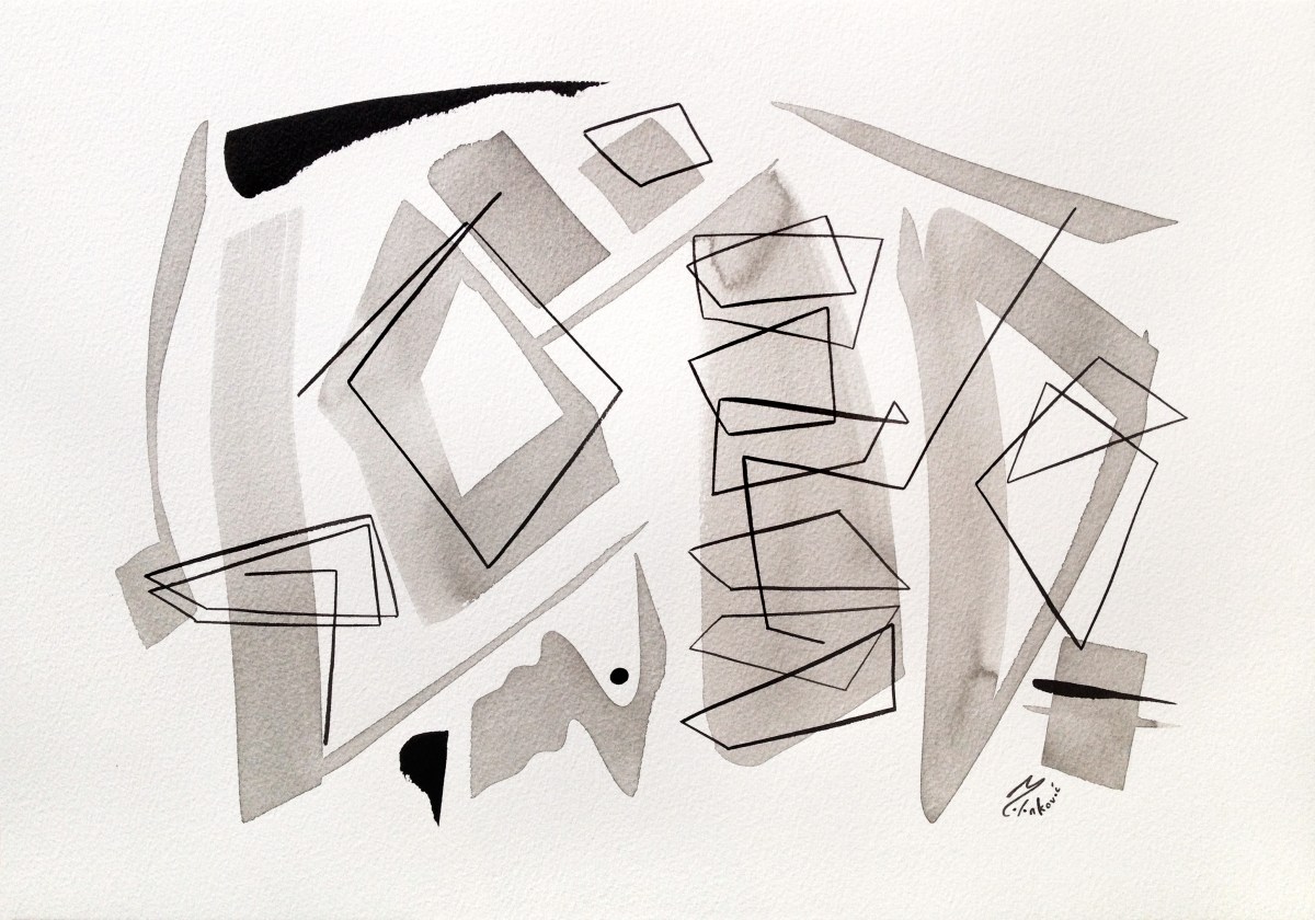 Breaking Through Consciousness Breaking Through Consciousness Abstract art painting Indian ink monochrome geometric paper Milinkovic April 2014