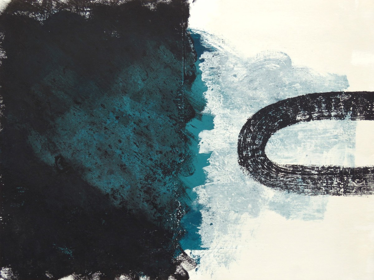 FLUVIAL FLUVIAL Abstract composition, acrylic painting on paper, monochrome with teal, February 2016, Milinkovic