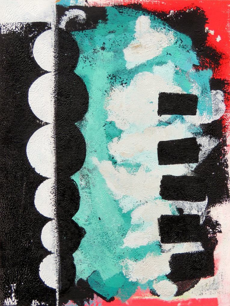 Abstract composition in monochrome, with red and teal, March 2016